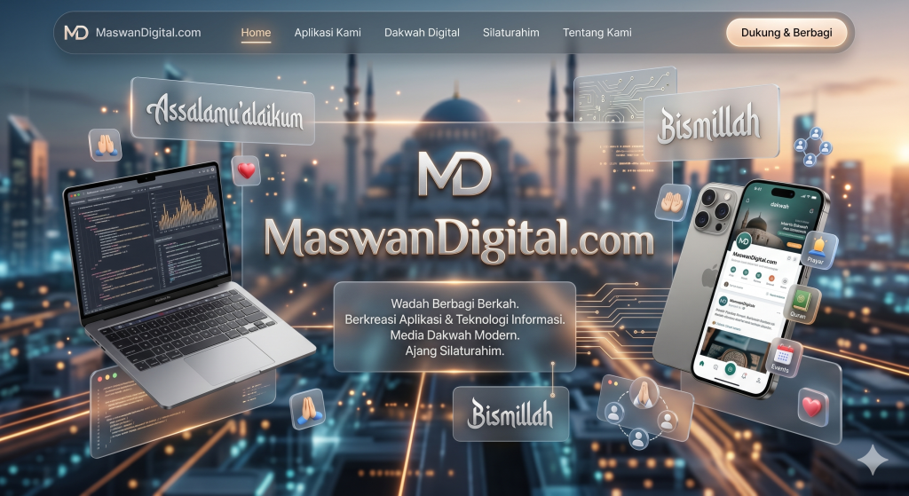 “Kami bangga memperkenalkan wajah baru visi MaswanDigital.com. Platform ini didedikasikan sepenuhnya sebagai wadah berbagi berkah, berkreasi dalam aplikasi dan teknologi informasi, media dakwah modern, serta ajang silaturahim bagi kita semua…”